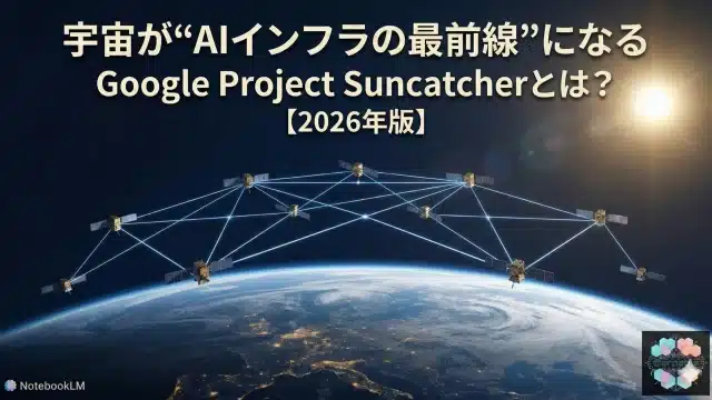 人工知能 Google Project Suncatcherとは?宇宙がAIインフラになる日【2026年】 2026年3月4日 ケニー 狩野 https://arpable.com/wp-content/uploads/2025/01/アープロゴ.png Arpable 最終更新:2026年3月4日 ※本記事は継続的に「最新情報にアップデート」を実施しています。 Google Project Sunca …