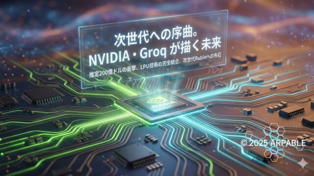 AIチップ 推定200億ドルのNVIDIA・Groq提携。LPU獲得が変えるAI推論市場のパラダイム 2026年1月4日 ケニー 狩野 https://arpable.com/wp-content/uploads/2025/01/アープロゴ.png Arpable 最終更新:2026年1月4日 ※本記事は継続的に「最新情報にアップデート、読者支援機能の強化」を実施しています。 推定200億ドル級 …