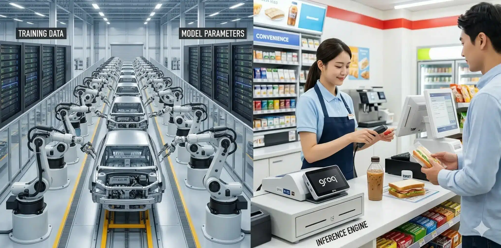 学習は工場、推論はコンビニのレジです。 この比喩で見ると、両者の違いは直感的に理解できます。