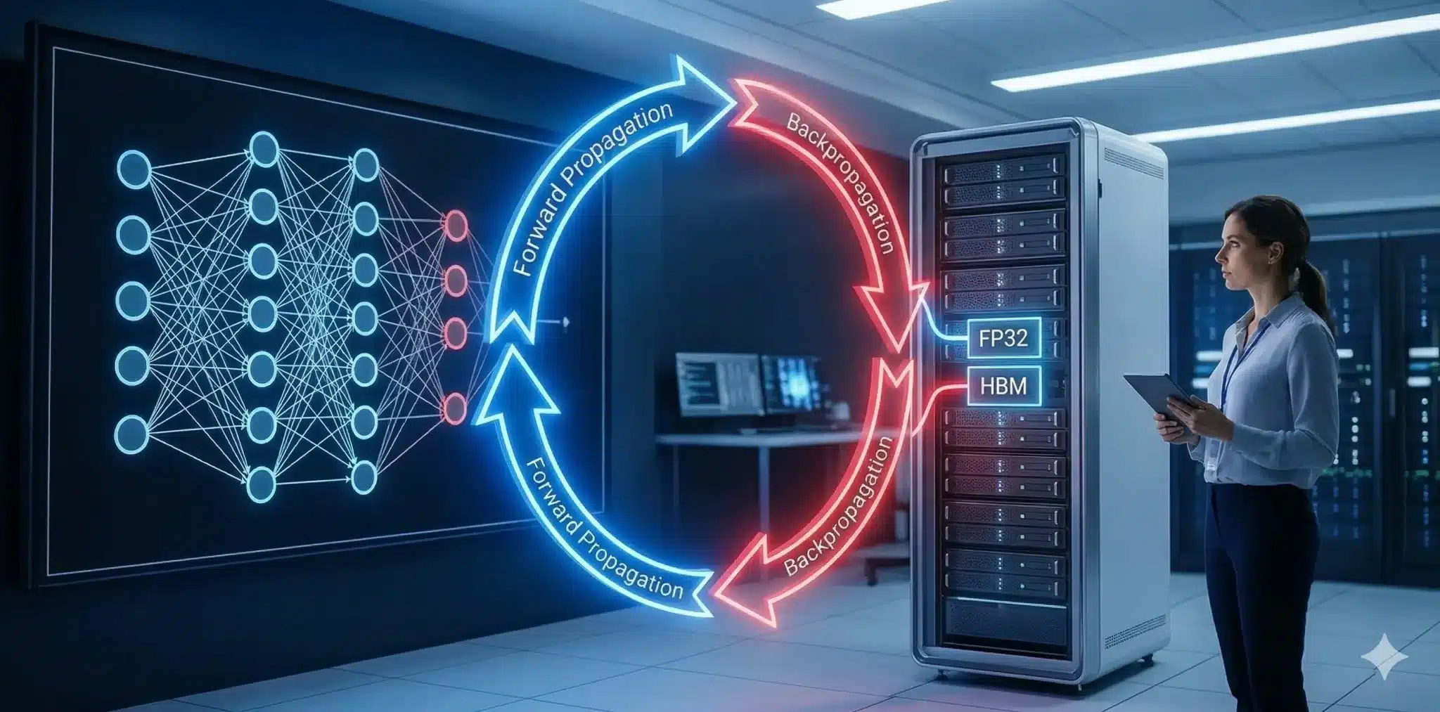 さらに学習では、数値精度も重要です。逆伝播では、わずかな誤差の情報を何層にもわたって伝搬させるため、途中で乱暴に丸めると修正の方向そのものが狂ってしまいます。だからこそ、FP32やBF16のような比較的高い精度が重視されます。