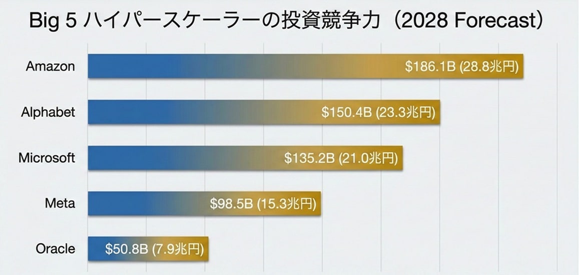 第4章:Big 5 ハイパースケーラーの投資競争力(2028 Forecast)