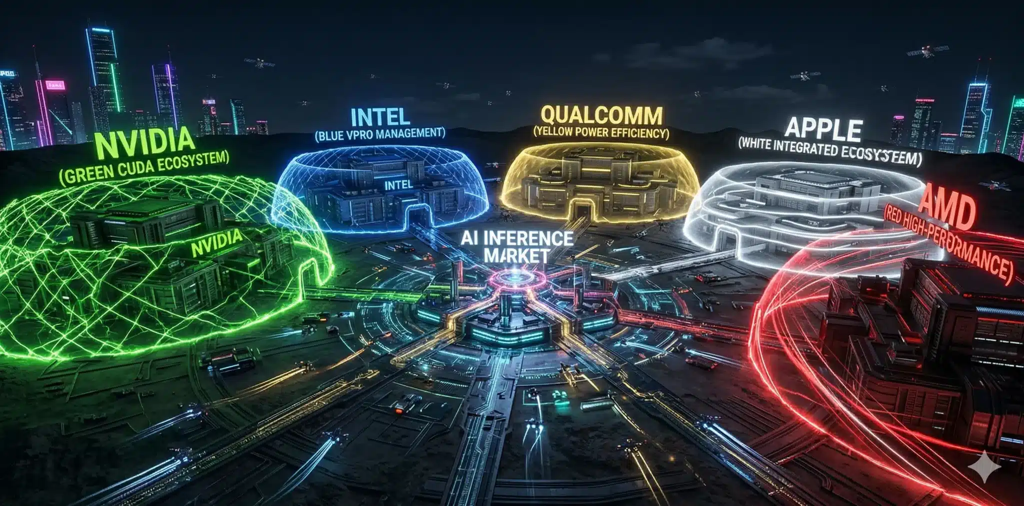 AI-PC市場はCPU覇者(Intel/AMD)・モバイル覇者(Qualcomm)・エコシステム覇者(Apple)・AIデータセンター覇者(NVIDIA)が激突する過去数十年で最も競争の激しい戦場だ。各社の戦略を読むことが最適なプラットフォーム選択に直結する。