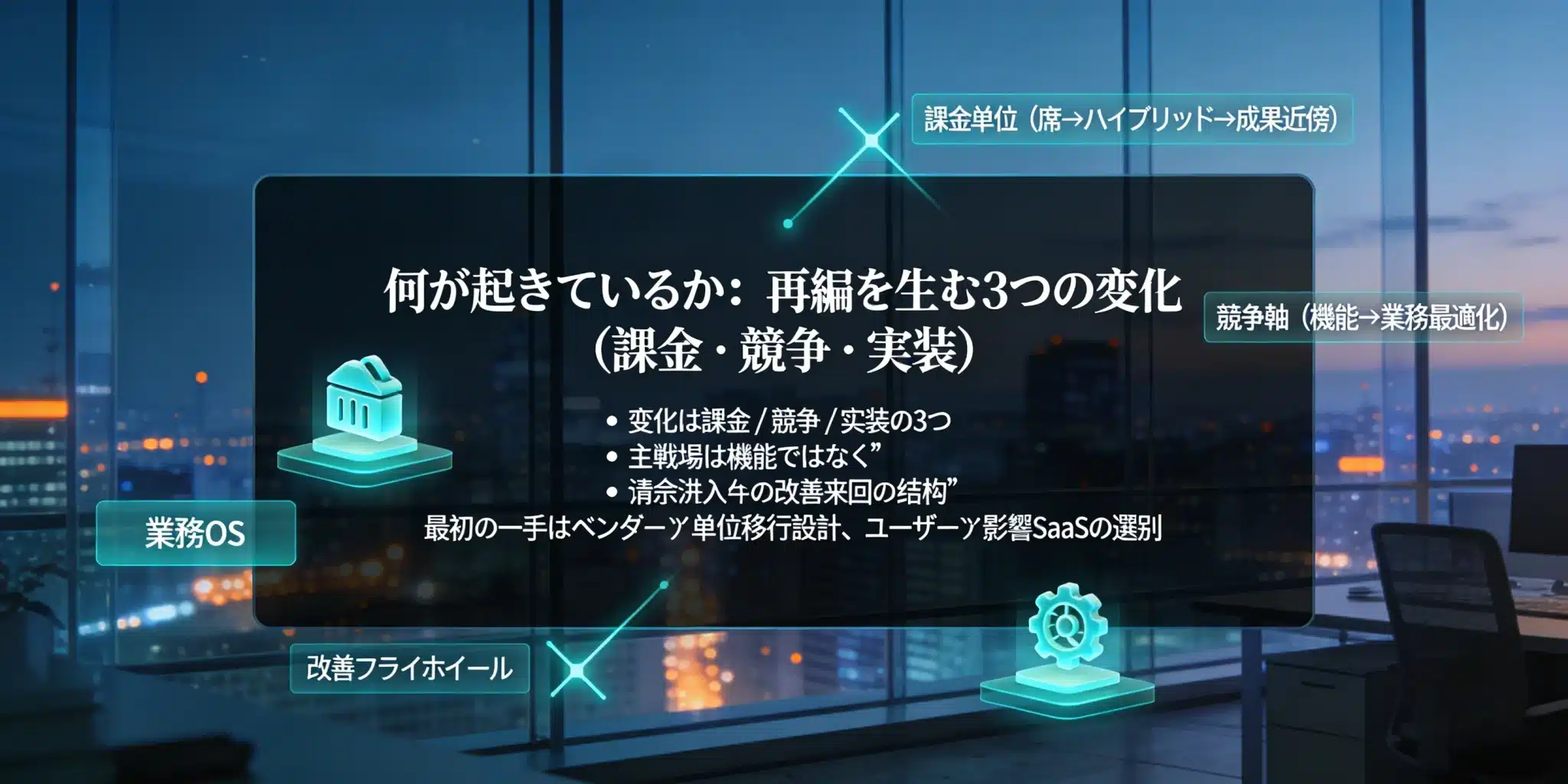 何が起きているか:再編を生む3つの変化(課金・競争・実装)