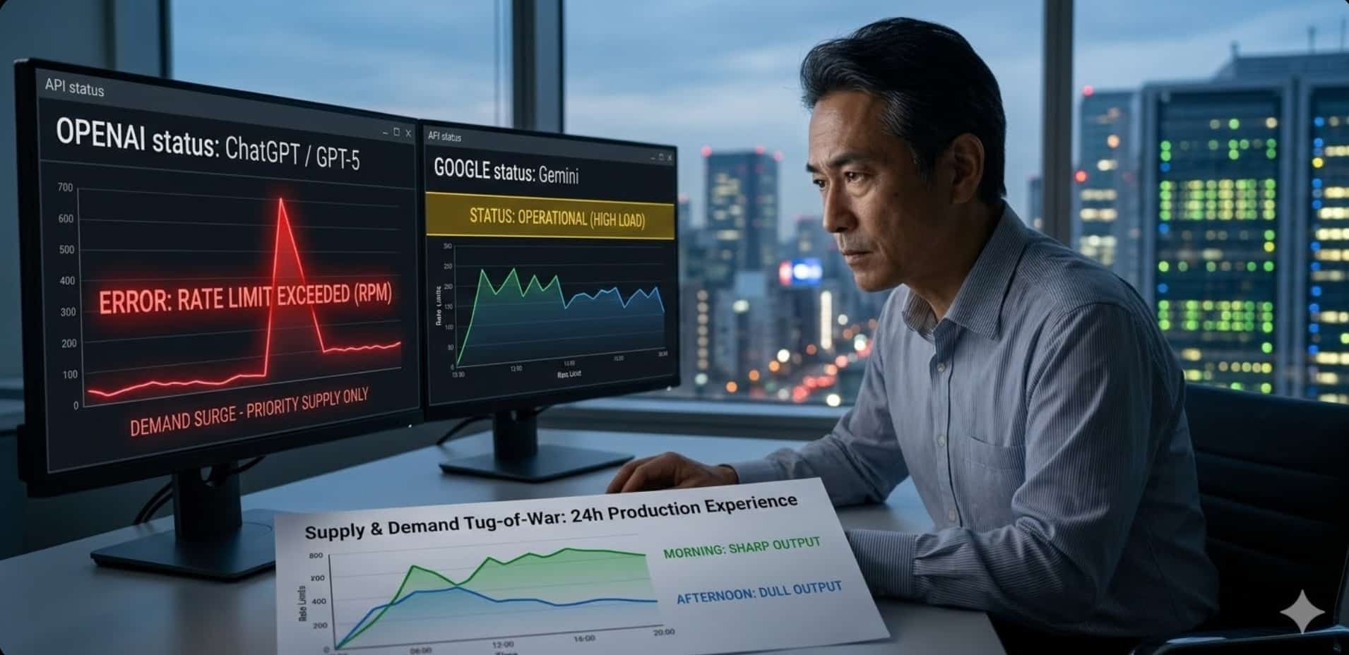 同じモデルでも、時間帯や需要状況、提供基盤の混雑によって、応答の切れ味や安定性の印象が変わることがあります。もちろん、これは厳密な実験で証明した結論ではありません。しかし、こうした体感は単なる気のせいではなく、供給制約時代のAI利用体験として理解するほうが自然です。