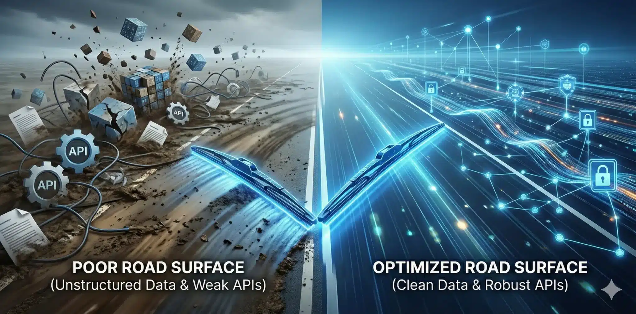 多くの企業が「高性能なAIエージェント(ワイパー)」を導入することに躍起になっていますが、実はその走行環境である「路面」の整備を忘れています。
