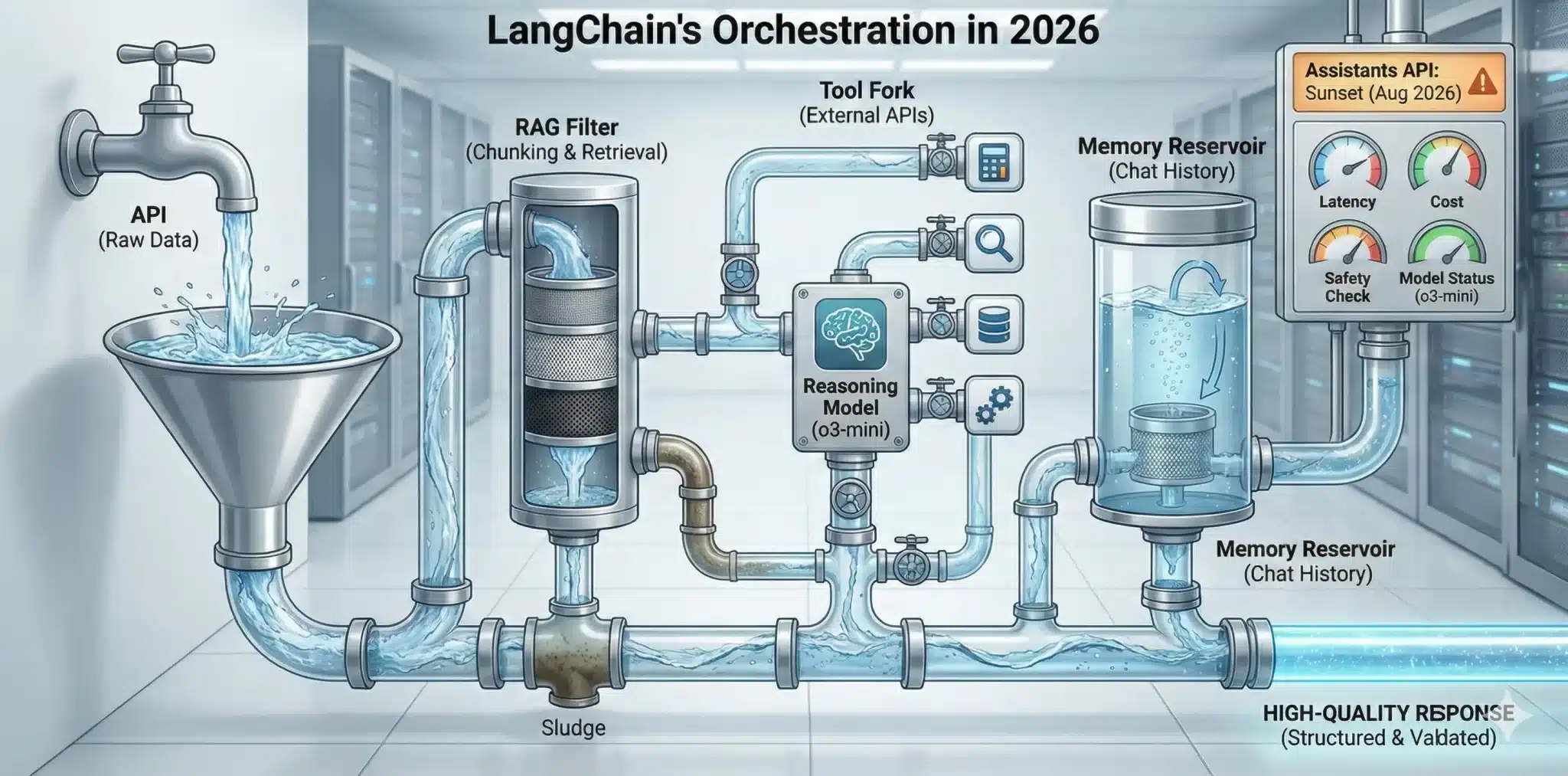 でも実運用では「浄水(RAG)」「分岐(ツール)」「貯水(会話履歴)」「漏水検知(監視)」が必要になります。