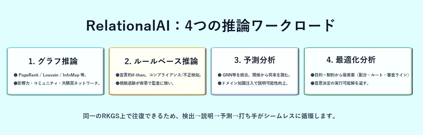 4種の推論を同じ土台で:グラフ/ルール/予測/最適化