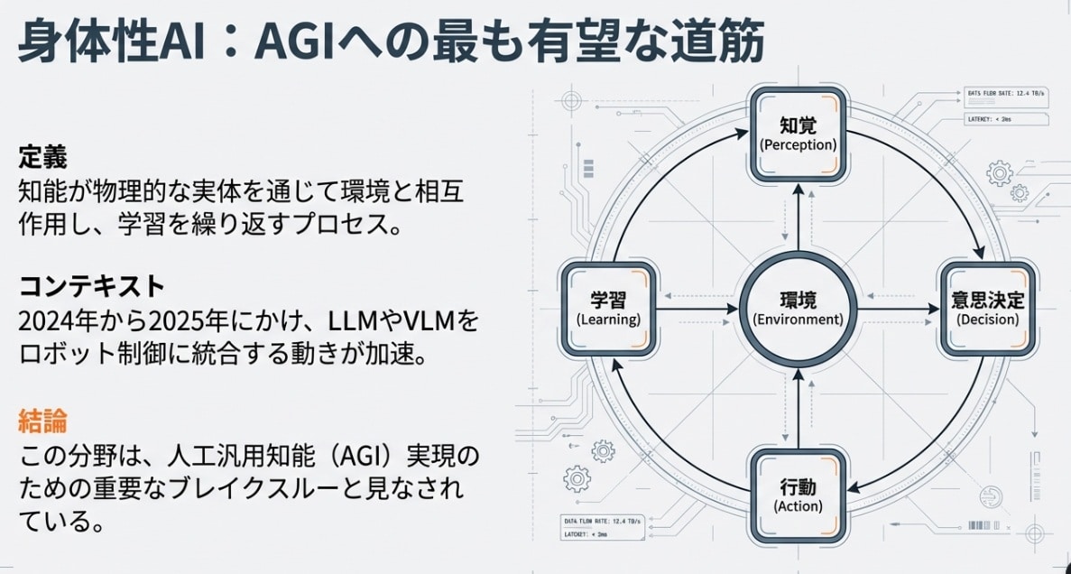 「身体を伴って初めて賢くなる」。この思想こそが、デジタル空間の天才を、現実世界の相棒へと変えるエンジンなのです。