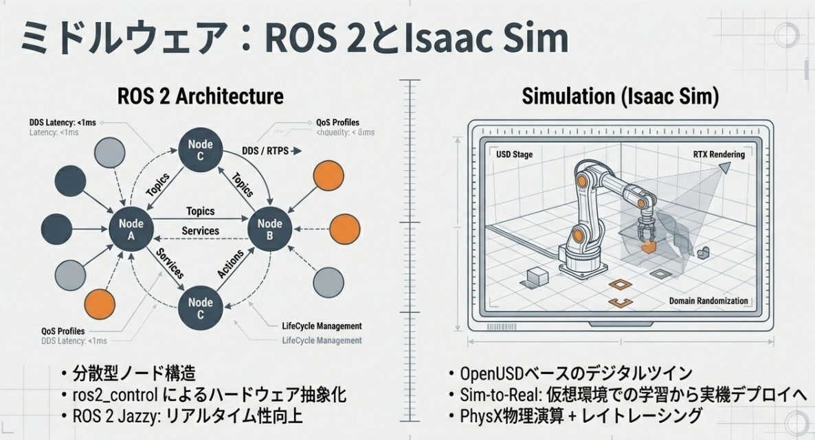 - 決定論的制御:1kHz(1ミリ秒周期)以上の超高速モーター制御ループを維持しながら、上位のAI指令を柔軟に反映。