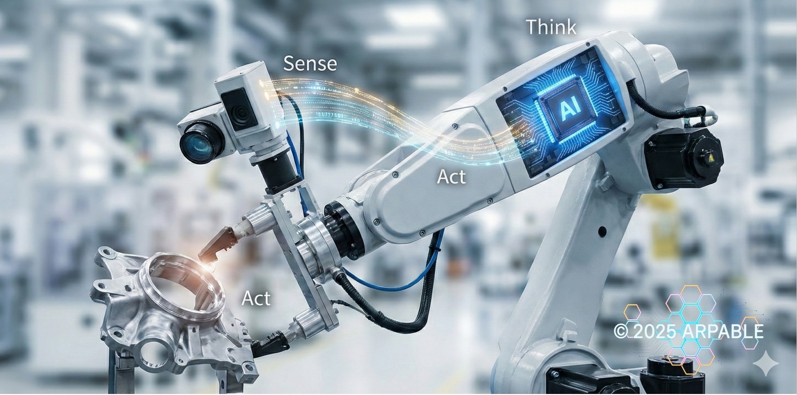 産業用ロボット2.0は、筋肉(ハード)と知能(AI OS)が「感知・推論・行動」のループで一体化した、製造現場の真の主役です。