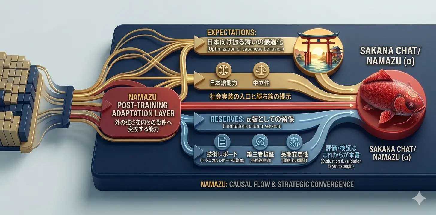 Namazuは、ソブリンAIを「巨大国産モデル保有競争」ではなく「外の強さを内の要件へ変換する能力」として再定義する可能性を持っています。