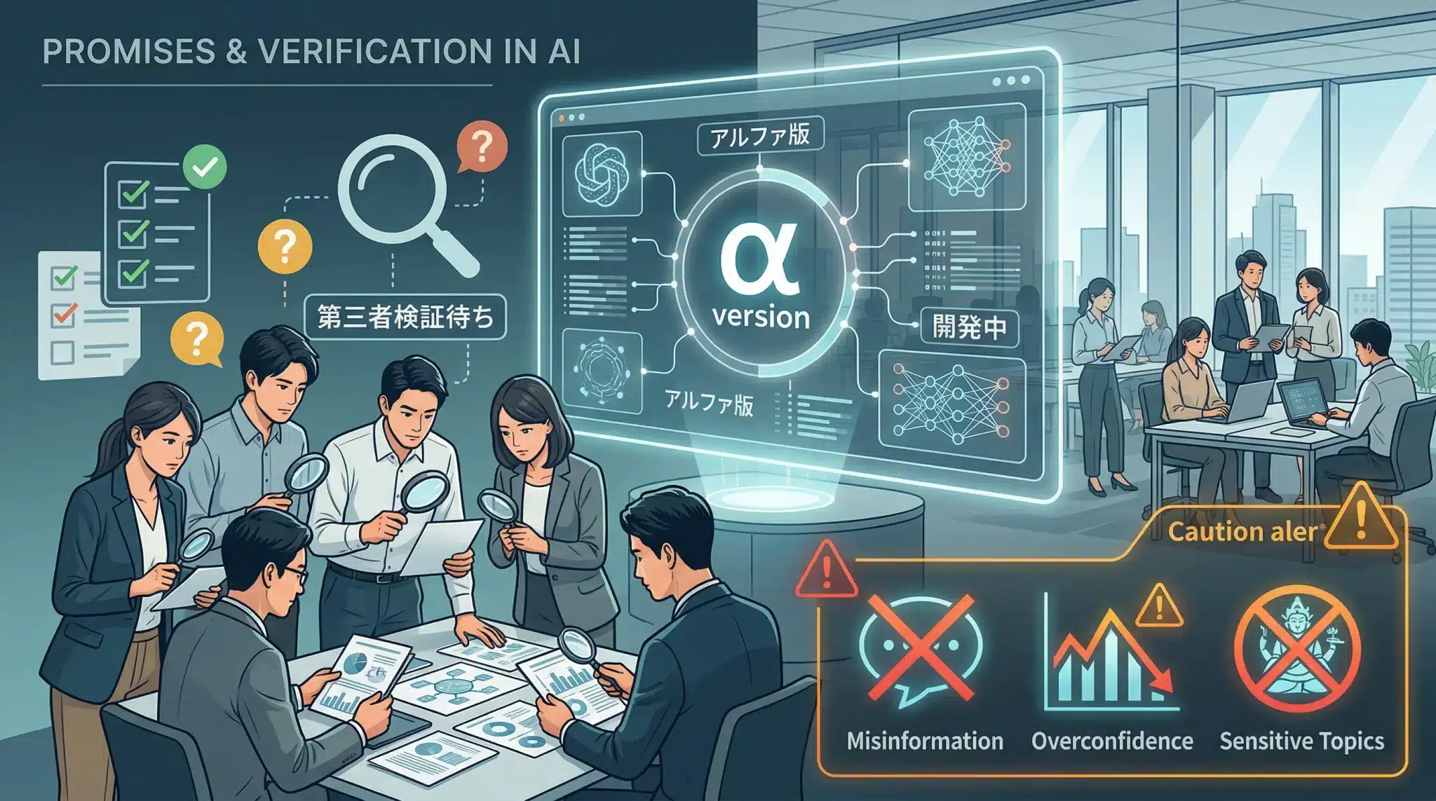 したがって2026年3月末時点では、「方向性は極めて有望だが、第三者検証はこれから」と書くのが最も誠実です。また、利用者が増えるほど、誤回答、過剰な自信、政治的に微妙な論点での応答など、現実の難しさも増していきます。α版である以上、ここを過剰に神格化すべきではありません。