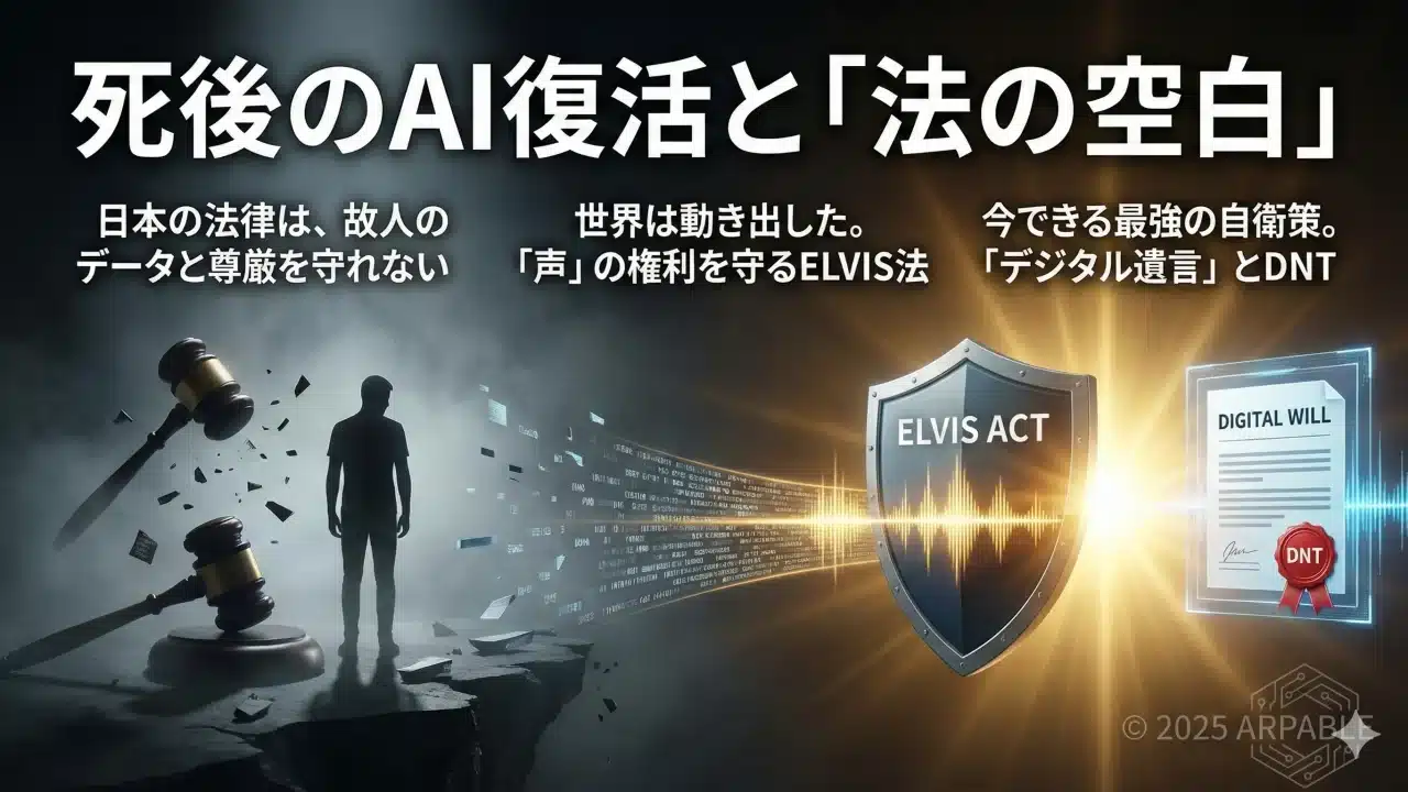 この記事を読むと死後のAI化(デジタル・レザレクション)を取り巻く深刻な法的リスクがわかり、自分や家族の尊厳を守るための「デジタル遺言」と「DNT(学習拒否)」の準備ができるようになります。
