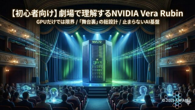 AIチップ Vera Rubinとは?「AI劇場」を止めない次世代AIデータセンターの仕組みを直感で理解する 2026年1月14日 ケニー 狩野 https://arpable.com/wp-content/uploads/2025/01/アープロゴ.png Arpable 最終更新:2026年1月14日 ※本記事は継続的に「最新情報にアップデート、読者支援機能の強化」を実施しています(履歴は末尾参照)。 …