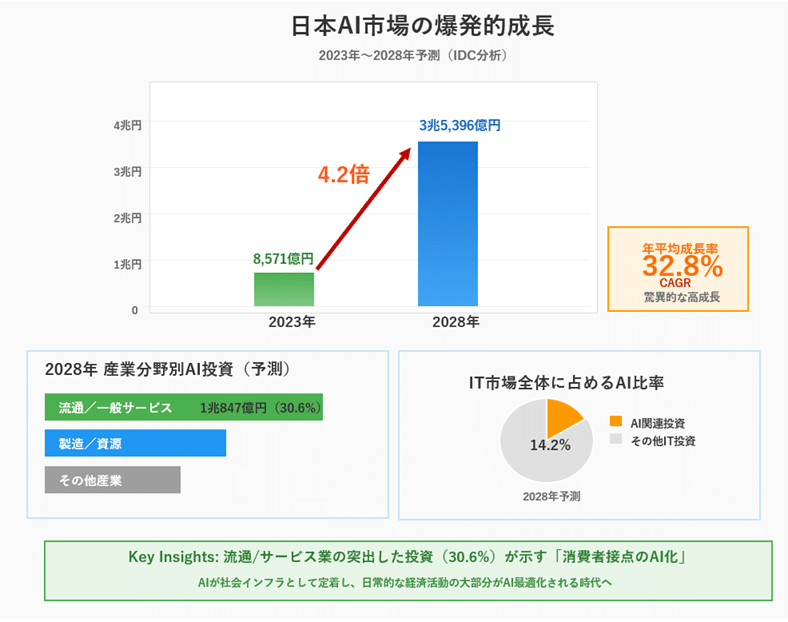 - 要点1:IDC Japanなど複数調査機関のデータが、国内AI市場の急拡大を裏付けています。